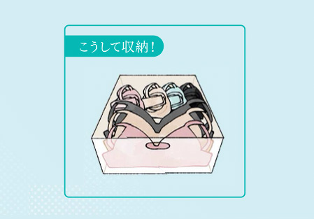 普通のフラジャーと、衣類にひびかないモールドカップタイプは分けて。普通のフラジャーは、上のように2つ折りにしてまとめます。モールドカップタイプは、そのままカップどうしを重ねて収納しましょう。