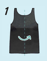 上のカップをへこませて、下のカップと重ねる。肩の部分と、すそを少し折る。