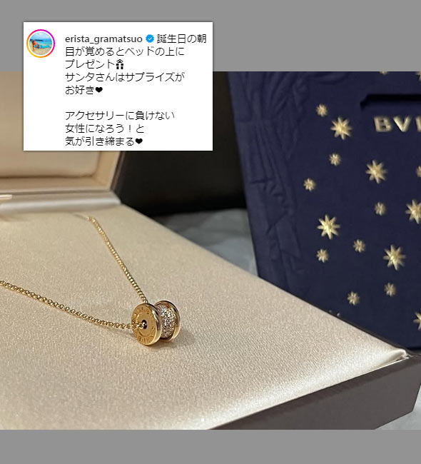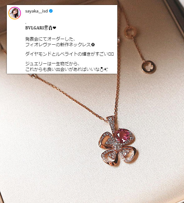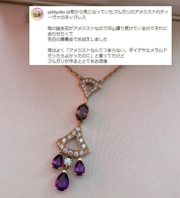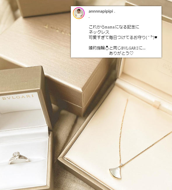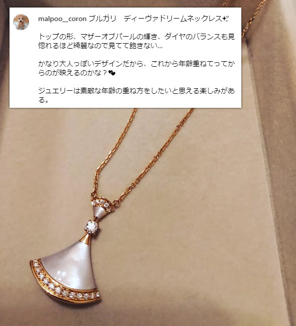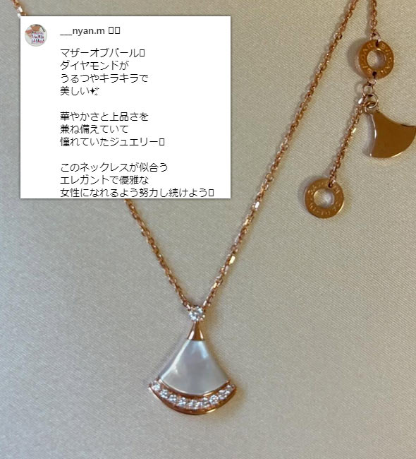 プロポーズでもらったbvlgariネックレス。大きなダイヤの下にはティアラが!