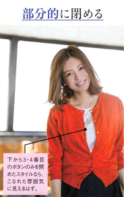ボタンの開け方だけでも、カーデの着こなしに変化が出るもの。ちょっとした工夫をしてみて。
