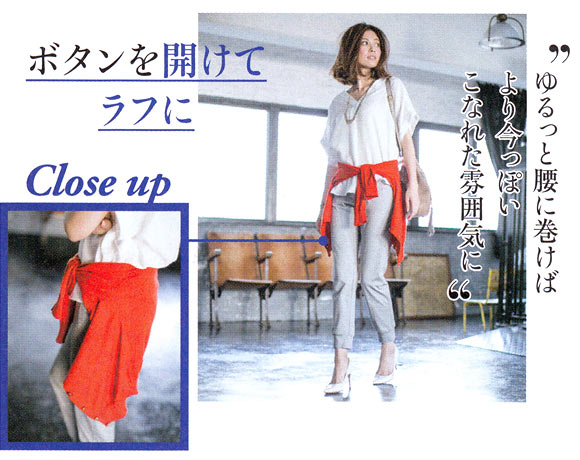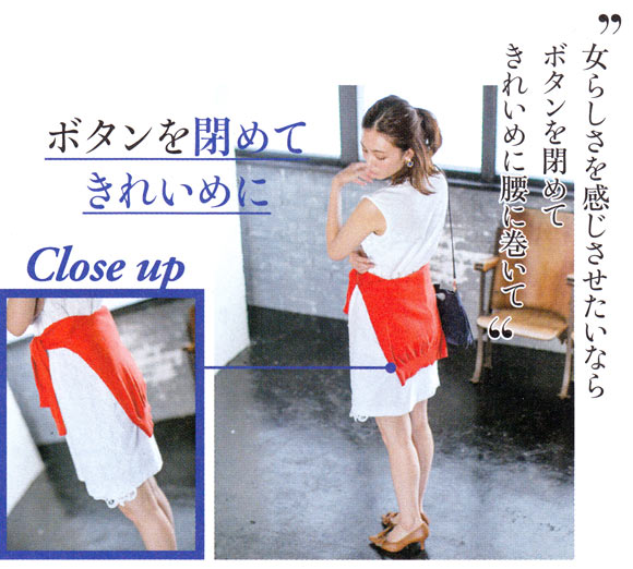 腰巻きスタイルはこなれ感を演出できるうえに、おしりをカバーするのにも使える!
