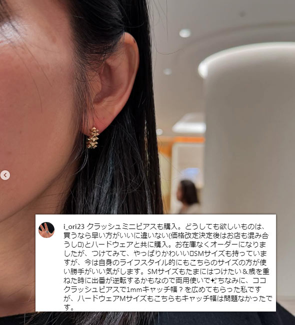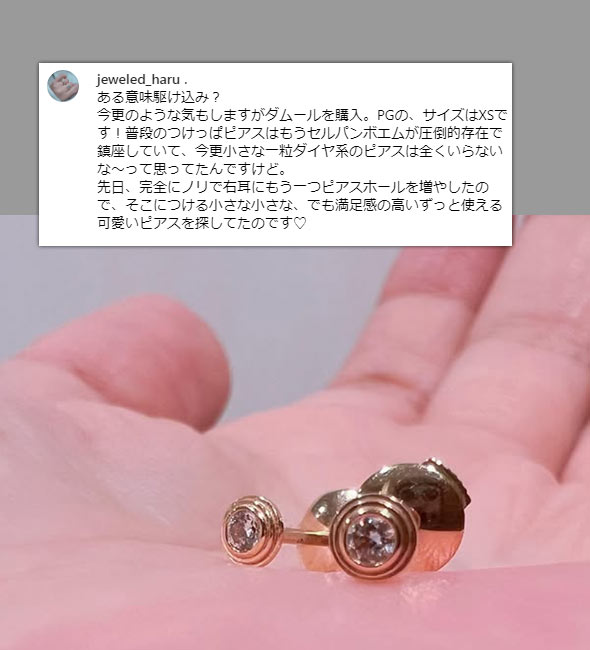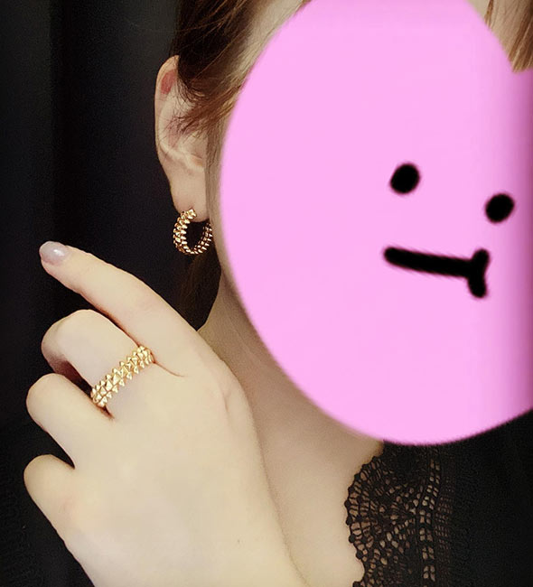 大きくて存在感のあるピアスが好きなんですが、これは小さくてもしっかり存在感があり、実際目にした時には即決でした!