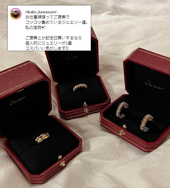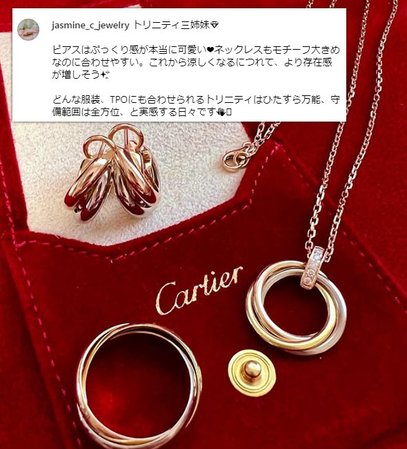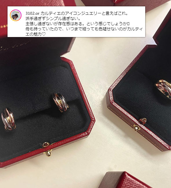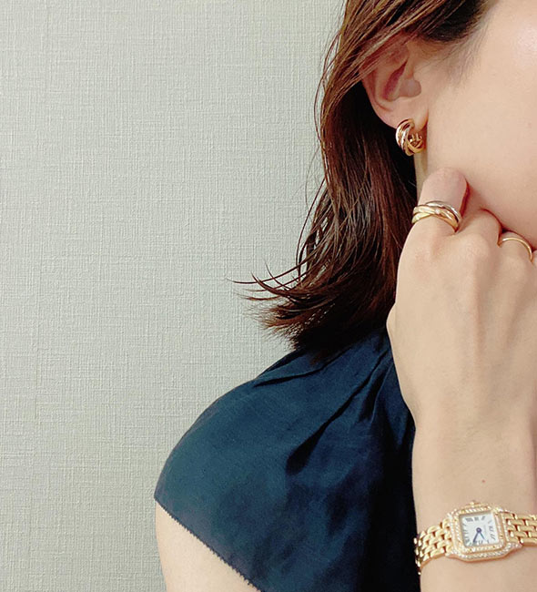 もともとカルティエ自体が余裕のある大人に選ばれやすいという点と、トリニティが大人の肌を華やかに魅せてくれる、という点から来ています。