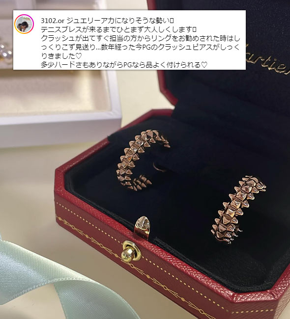ピアスで2位だったのは、トリニティと同様に“カルティエらしい品格のある存在感”を放つ「クラッシュ」でした。