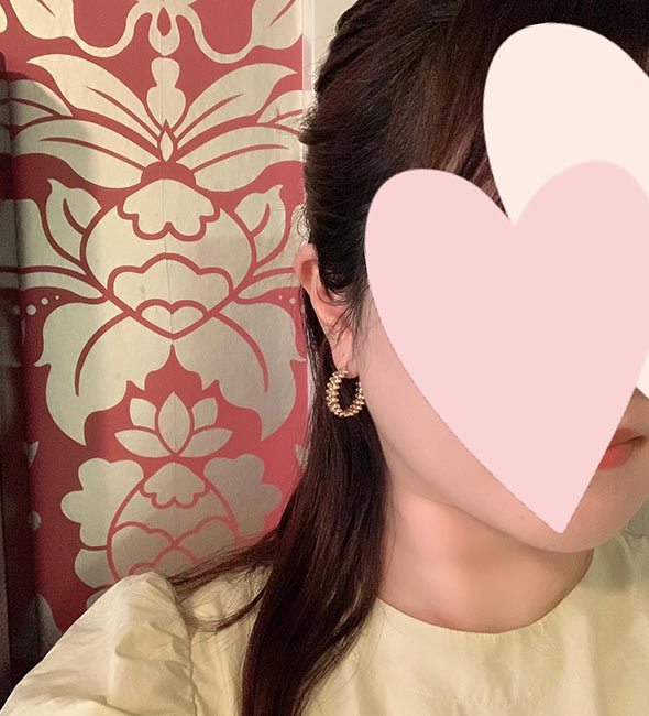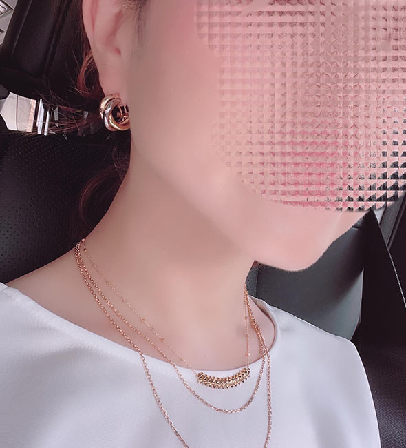 大きいサイズは今はもうピンクゴールドしかないそうですが、顔まわりなので馴染んで良いかなと。