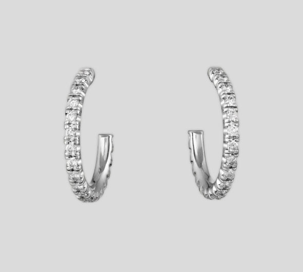 「エタンセル」のピアスは、フープ周りにパヴェダイヤモンドが繊細にセッティングされているのが特徴。