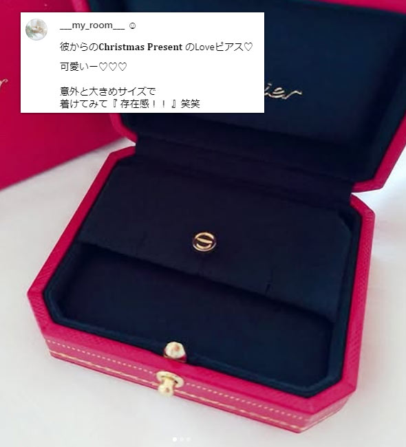 昨年の誕生日に自分へのプレゼントで買った、カルティエのピアスがようやく届きました! めっちゃカワイイ♪