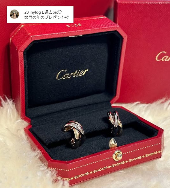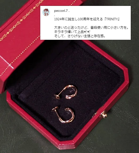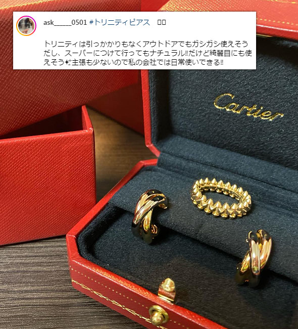 カルティエのトリニティピアスを誕生日プレゼントに貰いました。