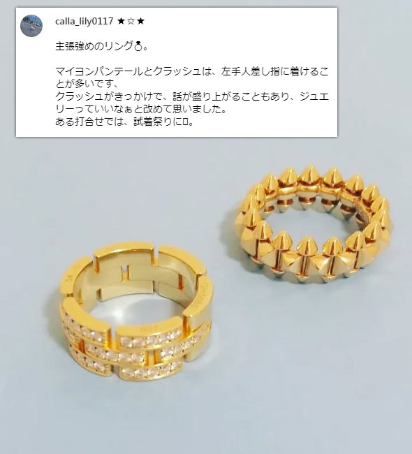 クラッシュシリーズが好き! 私が一番着けるのは、リングとピアス。