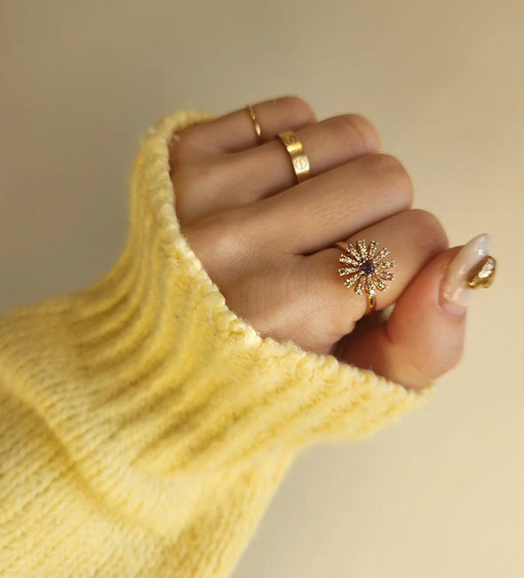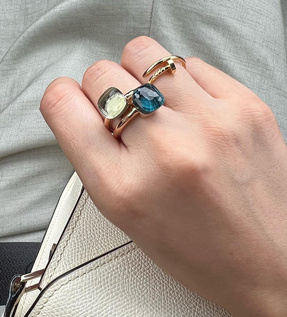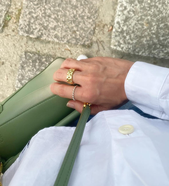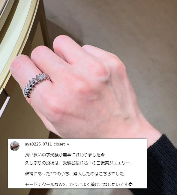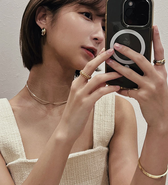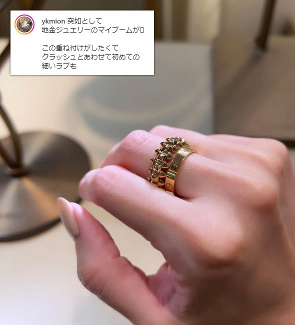 人差し指につける大ぶりのリングを探していた時に、店頭で一目惚れして、そこからずっと虜に…。