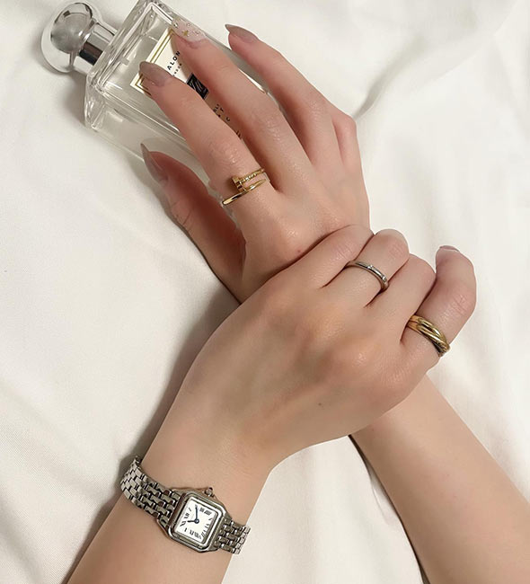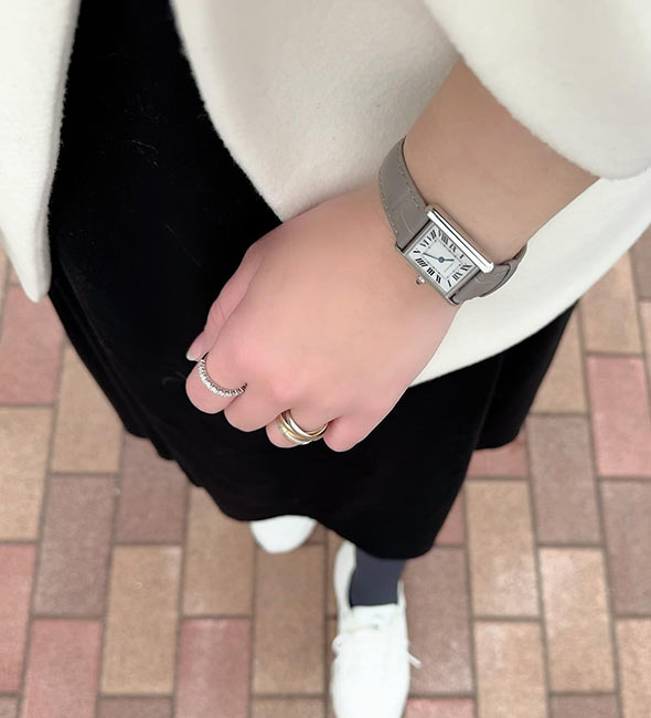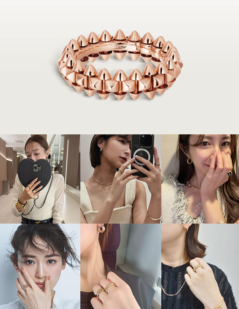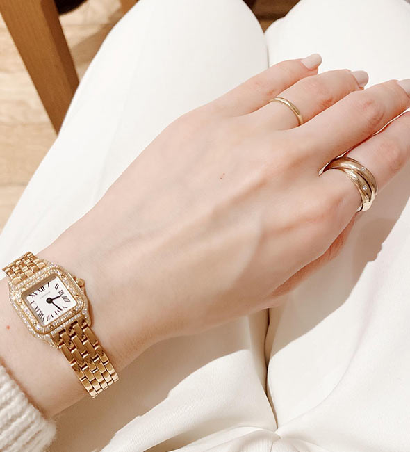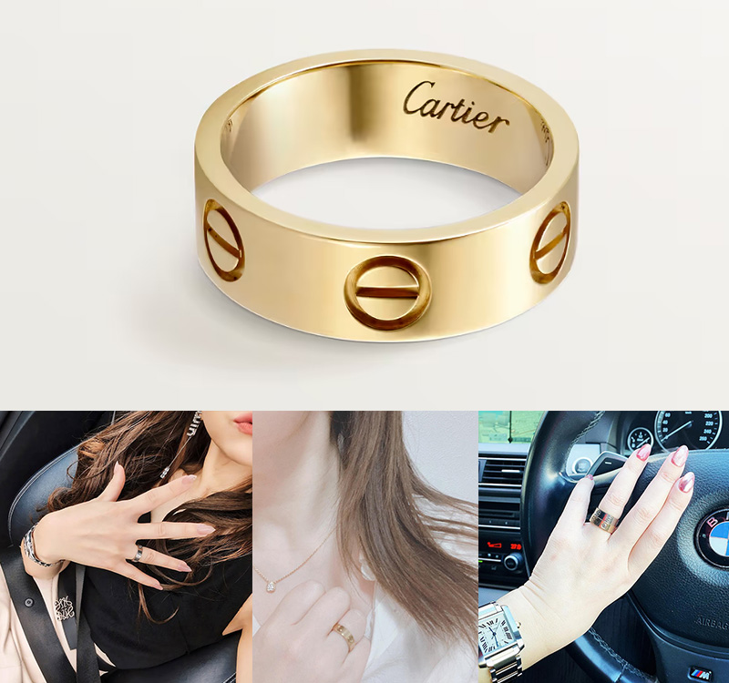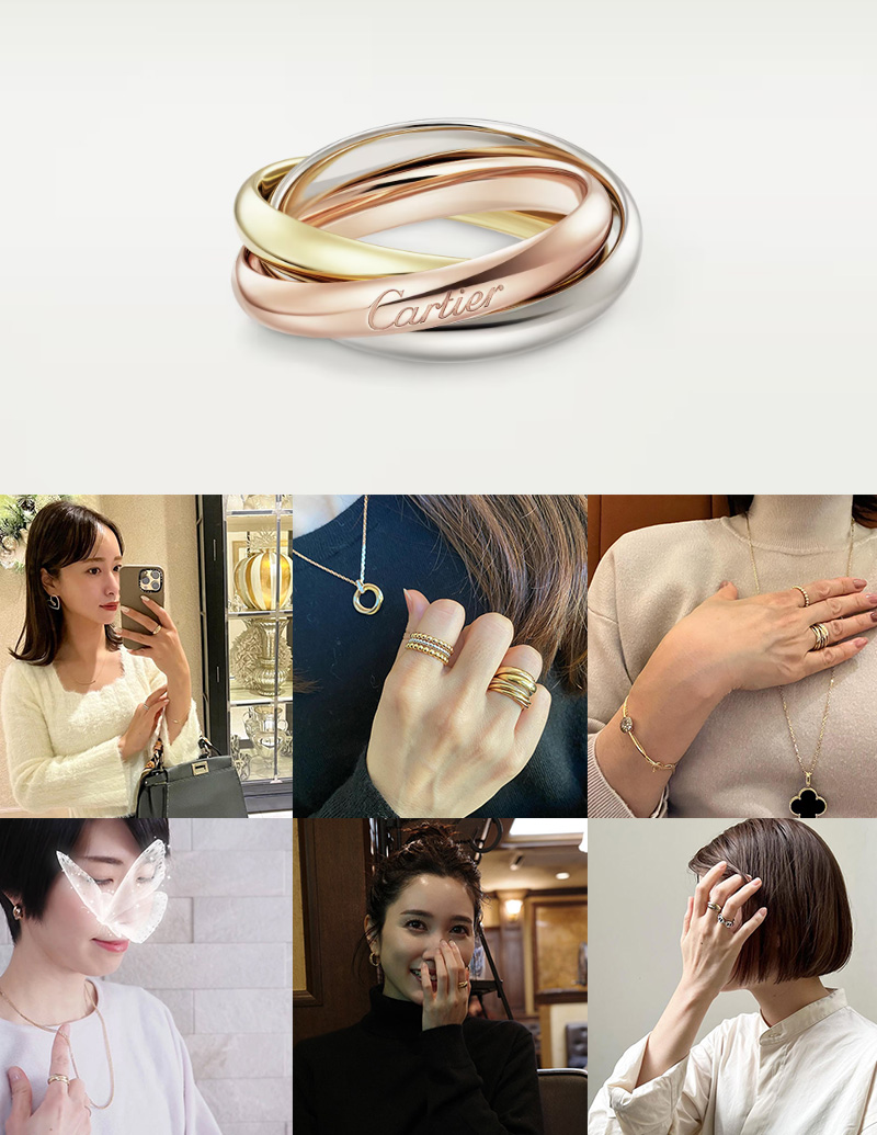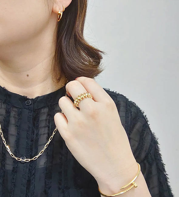 カルティエの2本目、3本目にはもちろんですが、持っておけばずっと愛せる一生物、そして他の指輪との重ね着けも楽しめるため、「カルティエの最初の指輪」としておすすめです。