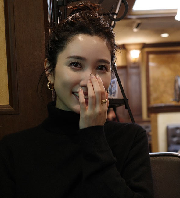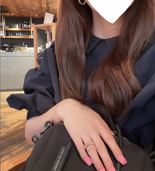 この日の薬指は、自分で買い付けたトルマリンをリングにした物。甘辛い組み合わせが好き!