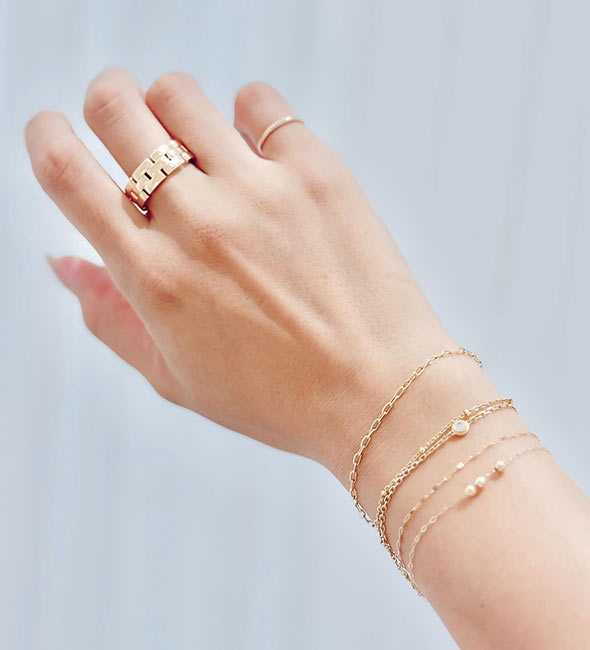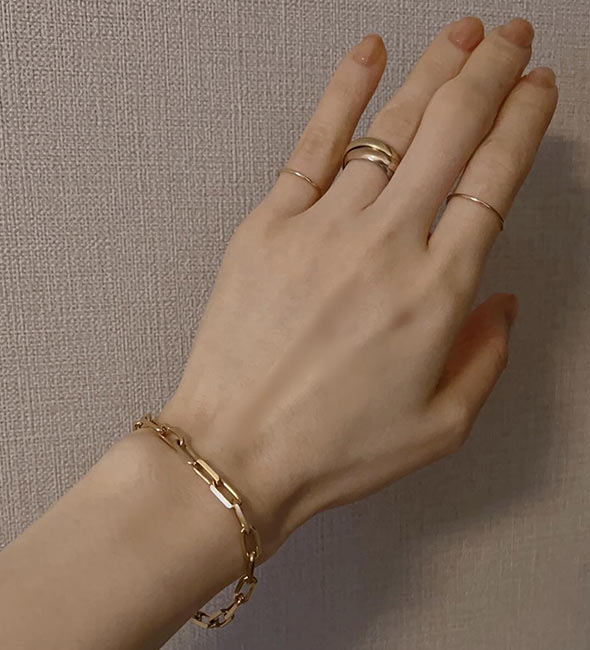そのまま1本でも映えますし、重ね着けなどアレンジもしやすい、絶妙なバランスの取れた名作です。