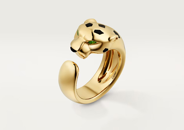フランス語で豹(ひょう)を意味する「パンテール」の通り、豹そのものを指輪で表現した、力強さと優雅さを兼ねたデザインが特徴。ちなみに豹はカルティエを象徴するアイコンで、1914年に登場しました。