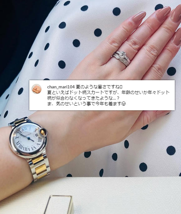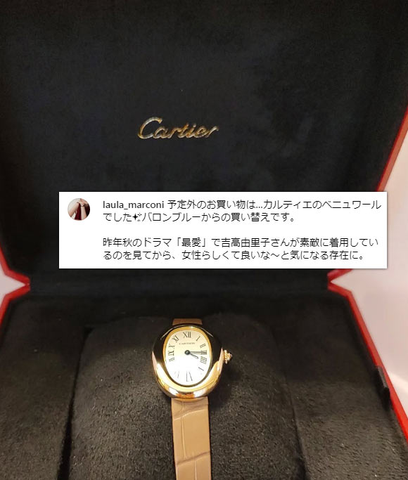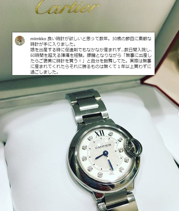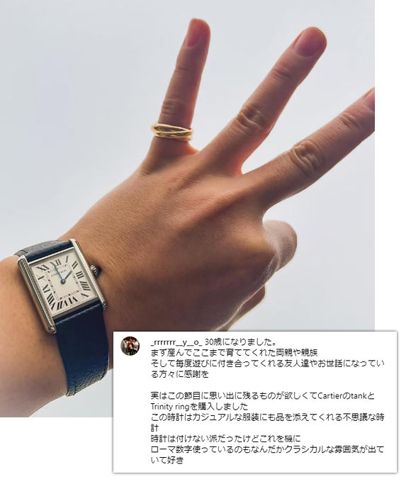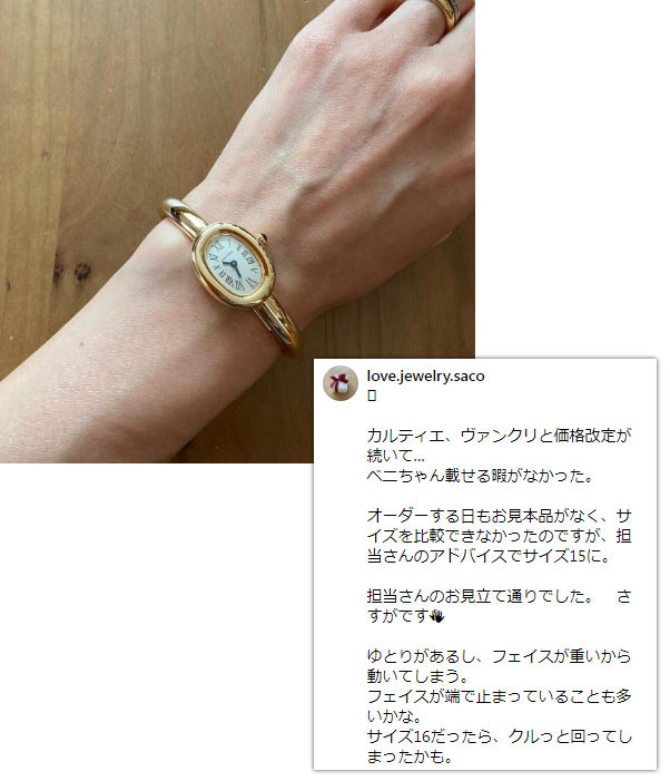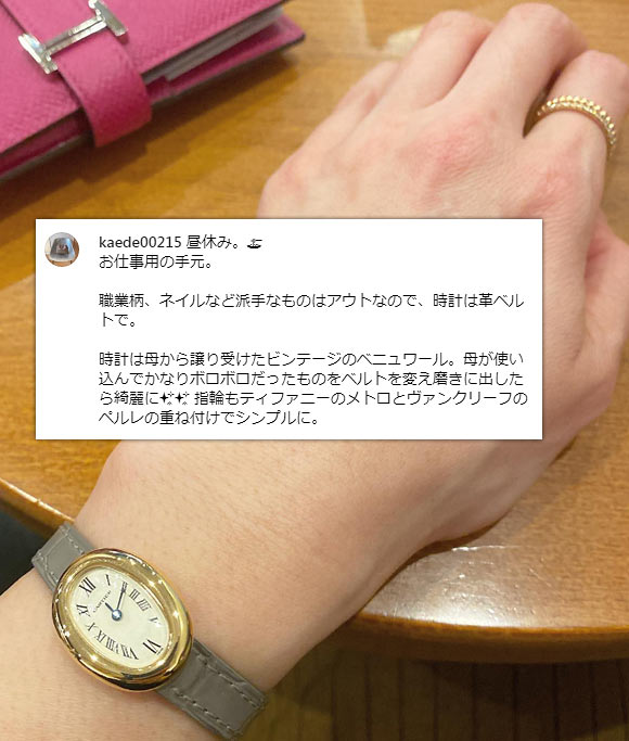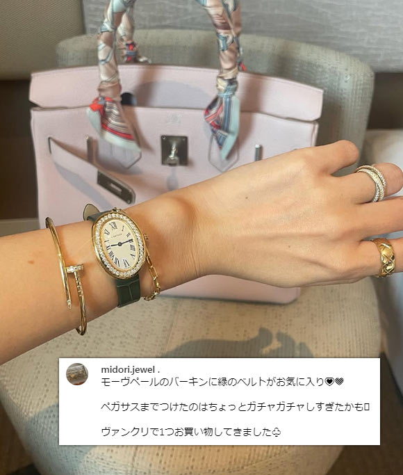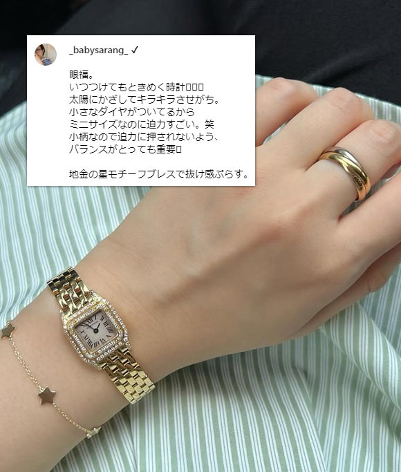 華奢なジュエリー感覚で使え、ハイジュエリーウォッチの代表格と呼ばれることも。また、40代・50代で持っている方が比較的いらっしゃるのも特徴で、例えば芸能人の「渡辺 満里奈」さんが愛用しています。
