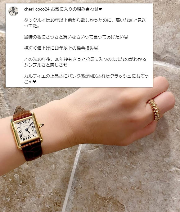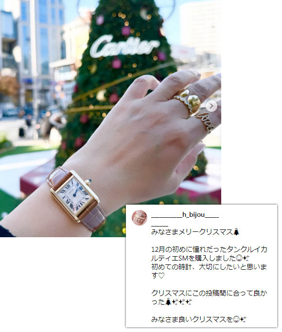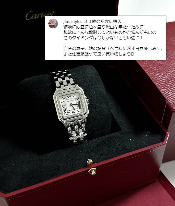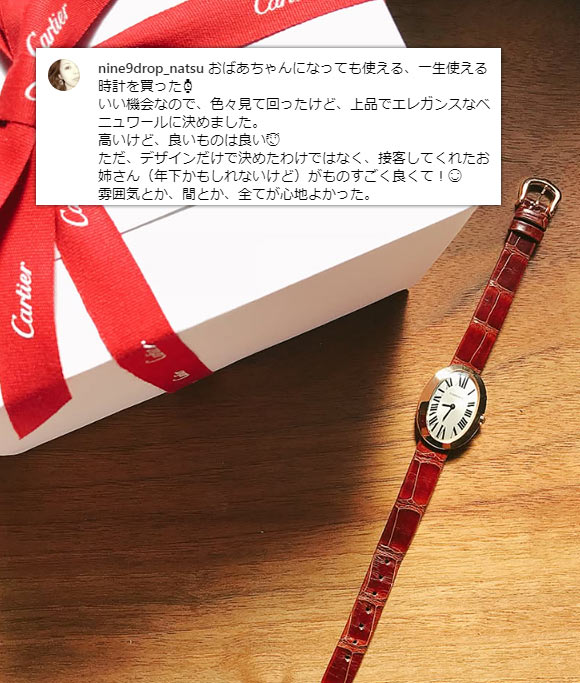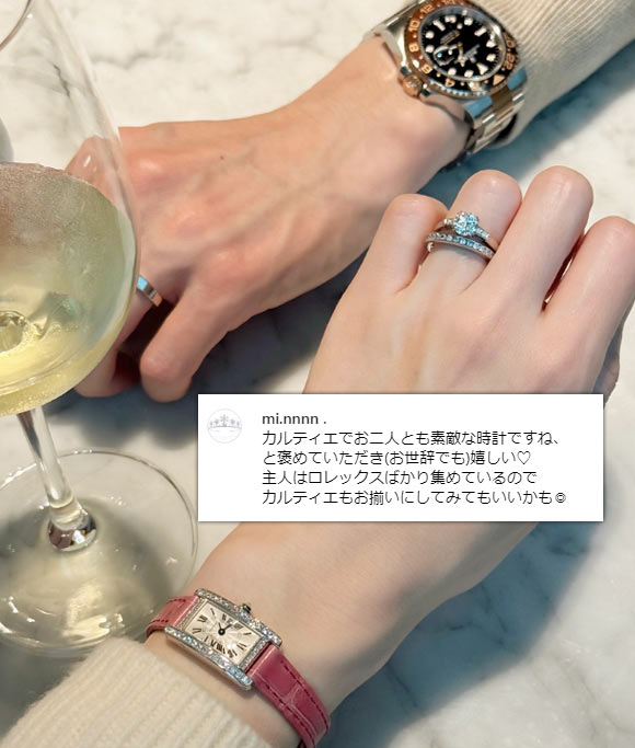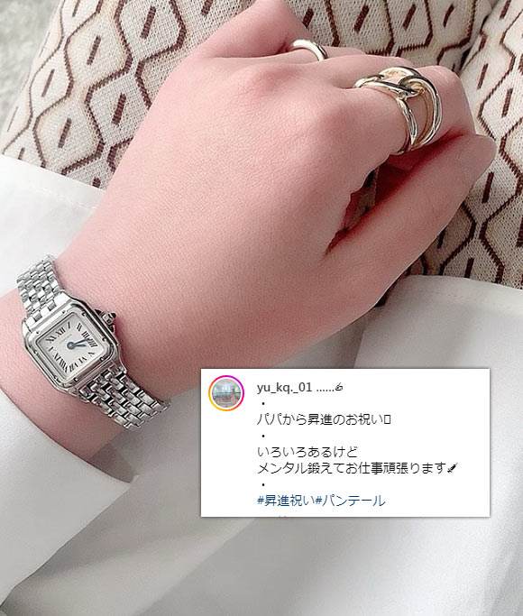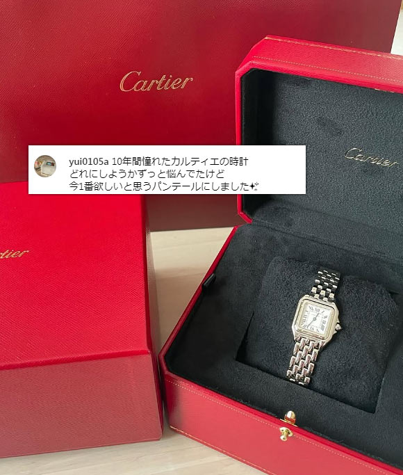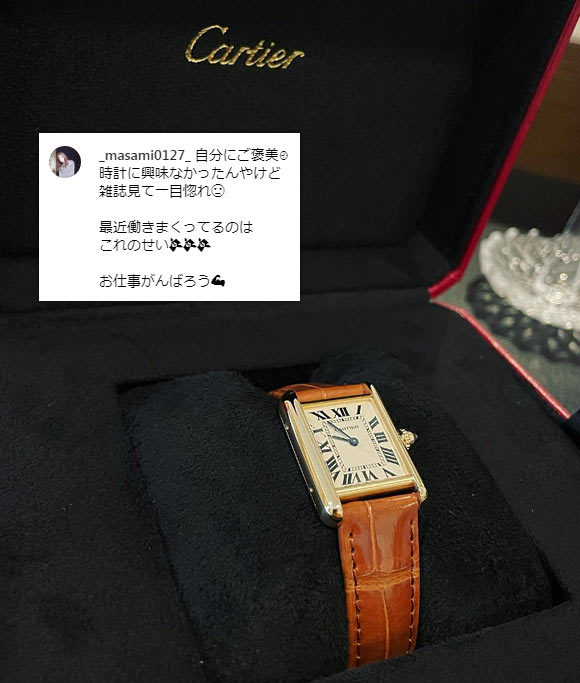 カルティエの中でも高級な価格帯、クラシカルなデザインも相まって、30代後半~50代の大人に選ばれることが多いです。