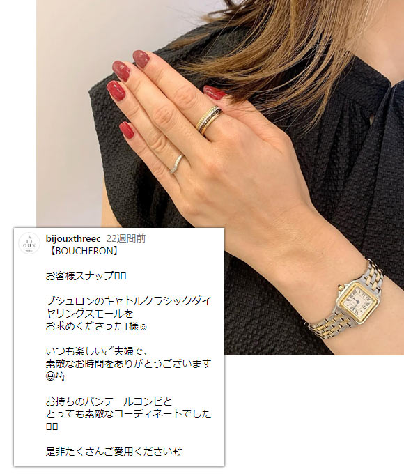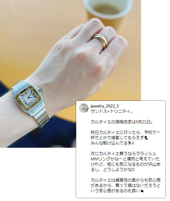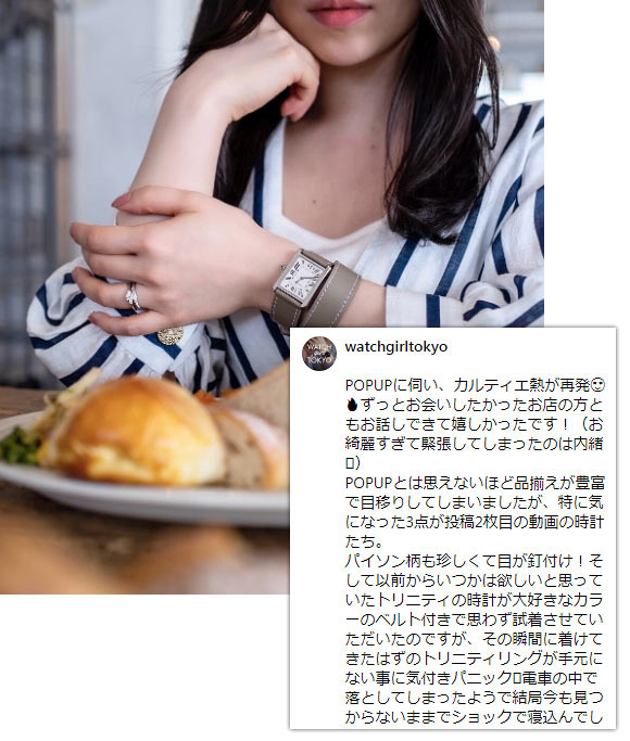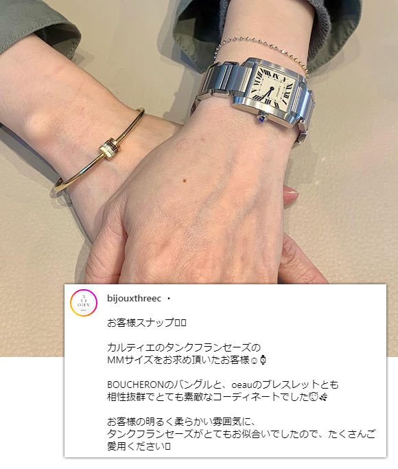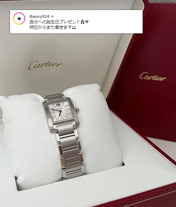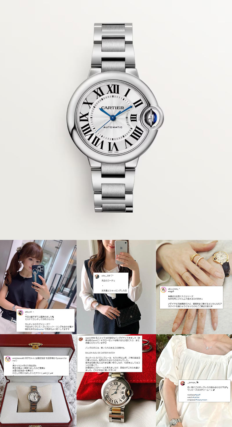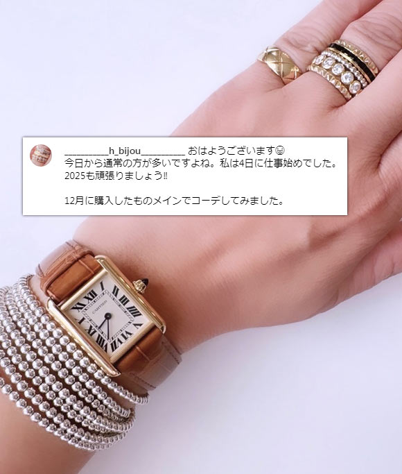 カルティエの中でも高級な価格帯、クラシカルなデザインも相まって、30代後半~50代の大人に選ばれることが多いです。