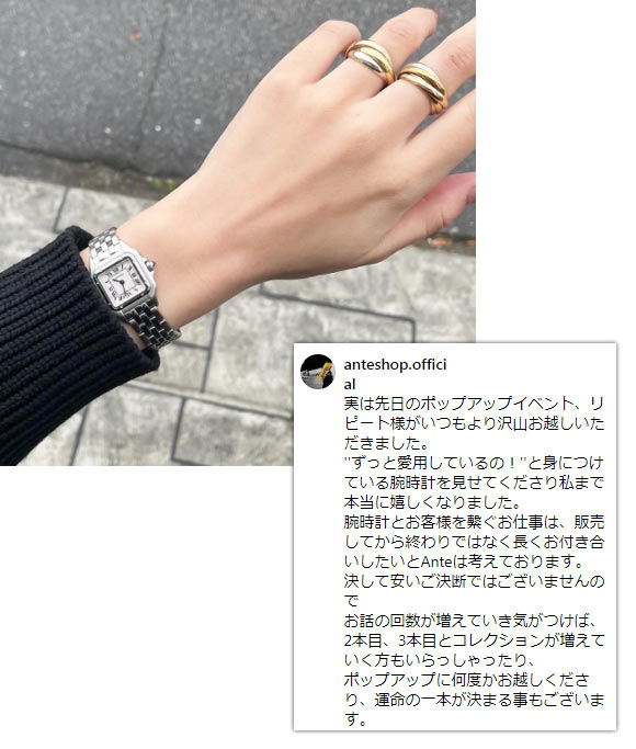 また、ステンレスベルトは手入れが簡単でデイリー使いしやすいです。そして若い方だと20代後半から、そして上は50代くらいまで、かなり幅広い年齢層が持っているのもパンテールの特徴です。