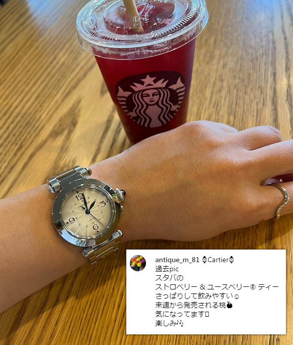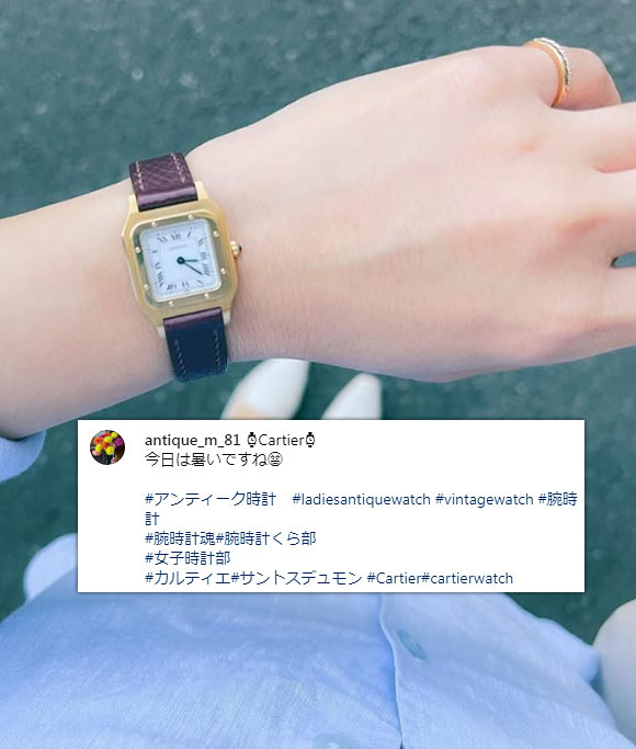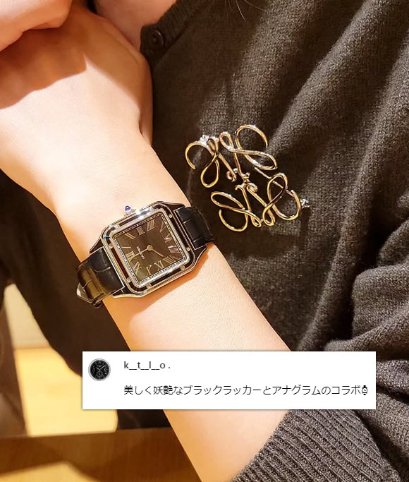 パッと見はフェミニンですが、クラシカルなローマ数字の文字盤、ギヨシェ彫りのダイヤルなど、カルティエらしさもしっかり入っています。