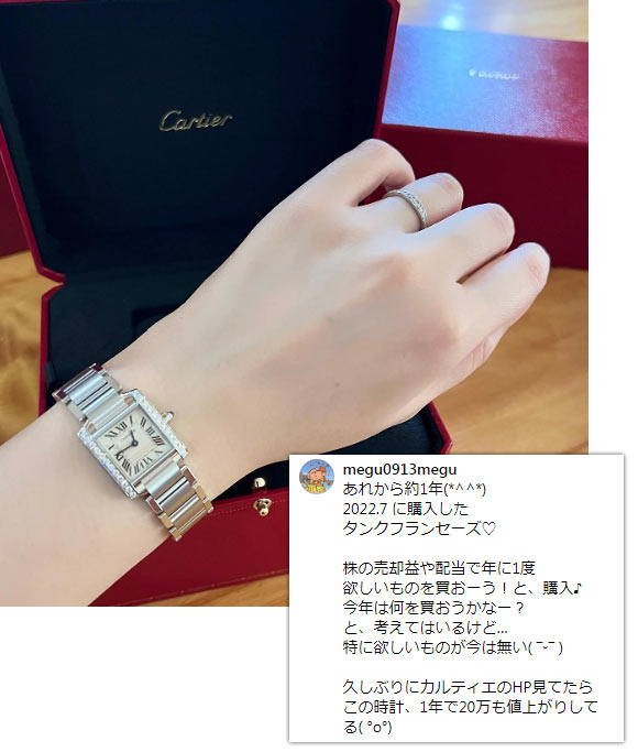 現モデルは100万円~という価格ネックもあり、昔ほどの人気は無く落ち着いています。しかしカルティエの丸型は唯一無二の個性を放ってくれます。