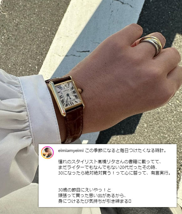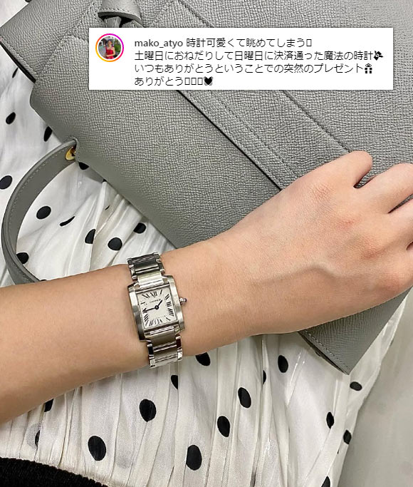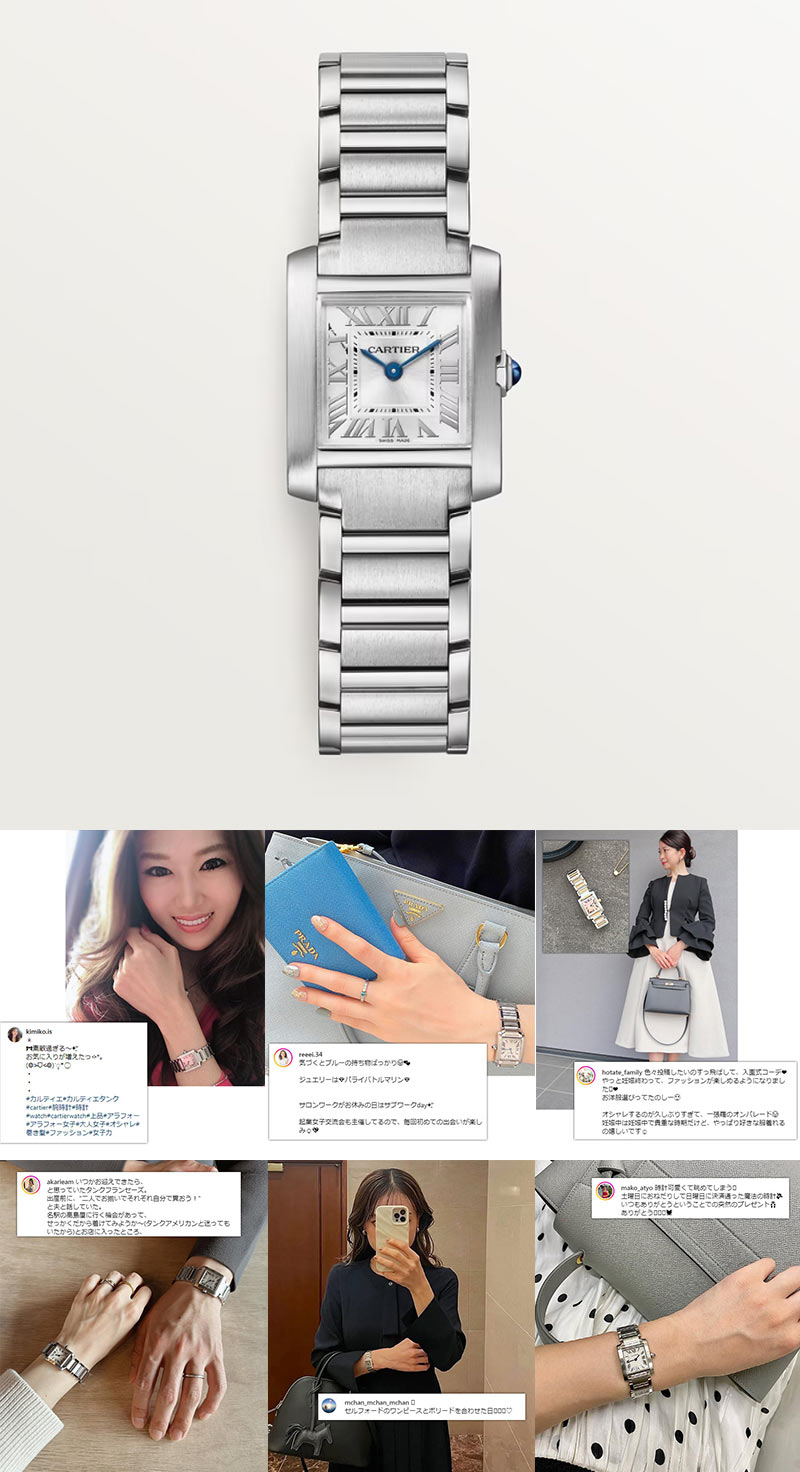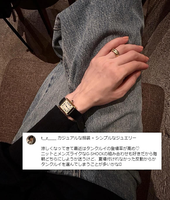 シンプルで飽きのこない角型フォルム+優雅なローマンインデックスと、使いやすさとカルティエらしさが共存しています。