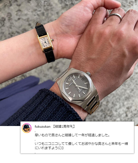 少し丸みを帯びたスクエア型が「優美な力強さ」を放ちます。また、エントリーのクォーツモデルは手が届きやすい点も魅力です。