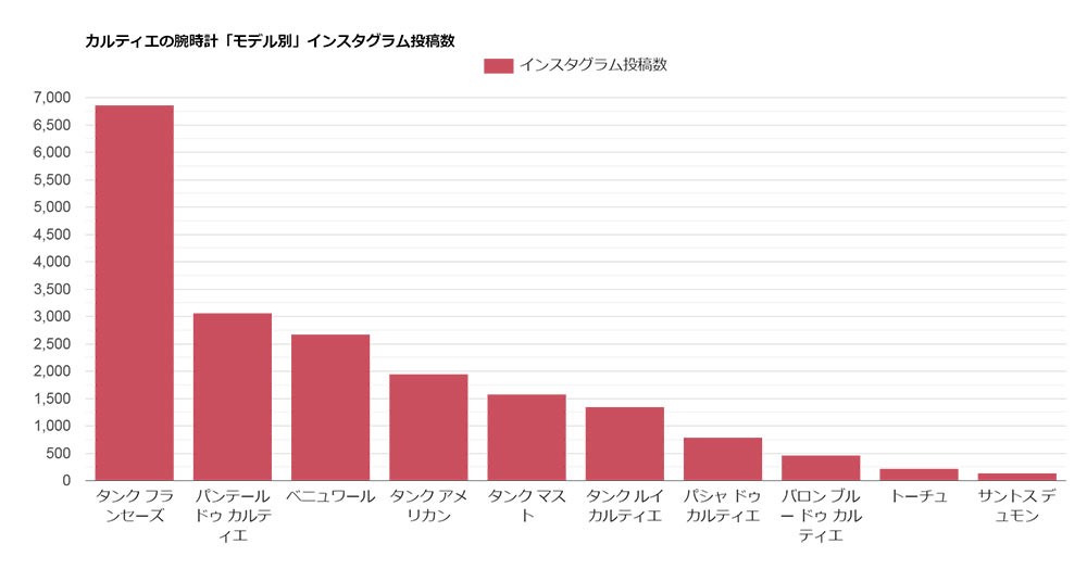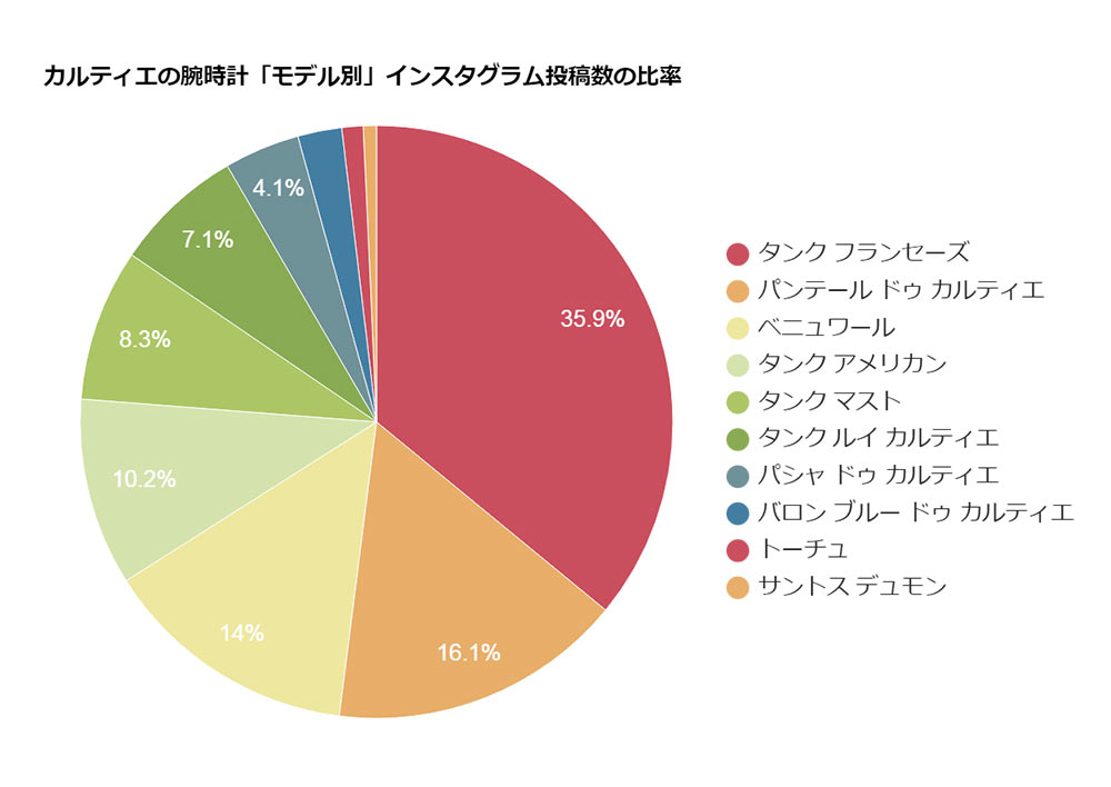 ※インスタグラムの投稿数を元にしています。また、サントス デュモンのみ男性向けの投稿が多かったため、比率(男性9:女性1)で計算しています。