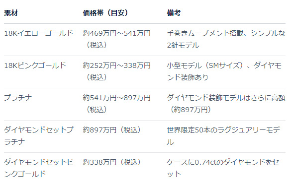 160万円~200万円で、18Kゴールド(イエローゴールドかピンクゴールド)ケースを使ったモデルが人気。