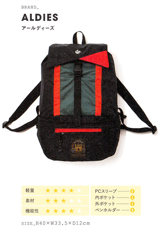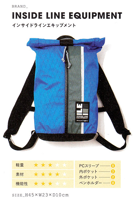 自転車乗りのことを考え、普段の荷物に加えて着替えも入れられるようメインコンパートメントを大容量にし、エ具などを楽々出し入れできる大型のポケットを前面に配置した、痒いところに手が届く嬉しい作り。