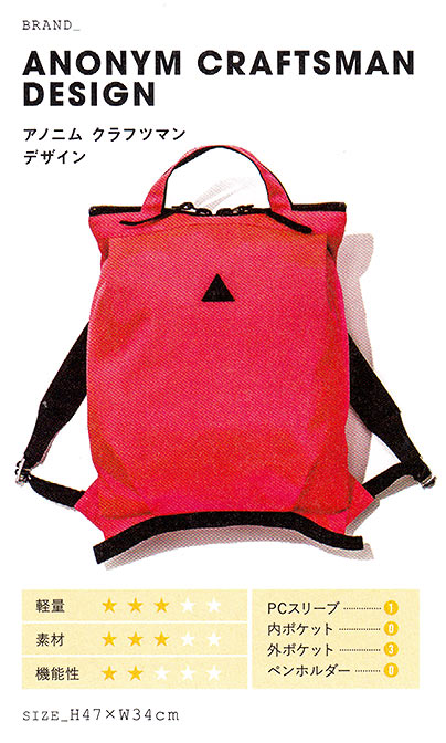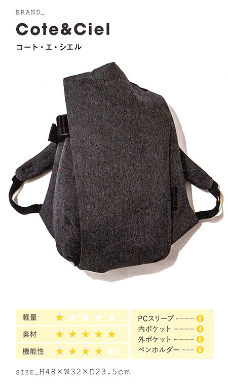 特殊な素材を使用した生地や、使い勝手の良い収納スペース、ポケットの配置など、利便性や機能性に長けたリュック。