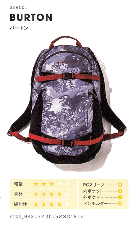 デイリーからスノーボードまで幅広いシーンに対応。PC収納スペース、人間工学に基づいたショルダーストラップ、ボードなどのギアも運ぶことができるストラップなど、機能がふんだんに詰まった万能バックパック。