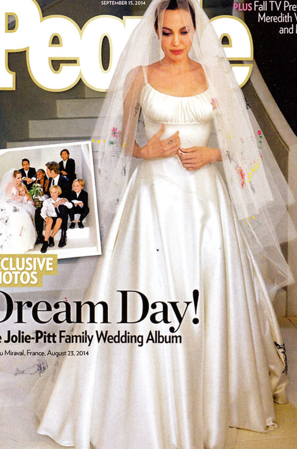 すでに6人の子もちのブランジェリーナ。アンジーが子どもたちの絵で彩られたウェディングドレスを着て、息子ふたりとヴァージンロードを歩いたことも話題に。ファミリー婚という新しい概念を作りました。