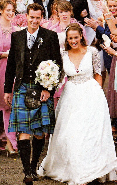 トップテニスプレーヤーのアンディは、9年の交際を経てキムと結婚。親族やごく親しい友人のみで和やかに式をあげたそう。スワロフスキーがちりばめられたキムのドレスは、ジェニー・パッカムのもの。