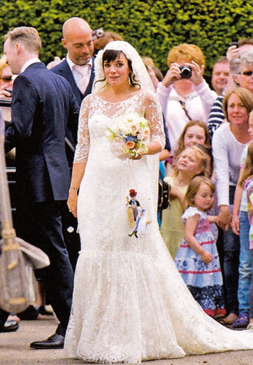 妊娠6カ月のお腹をカバーするエンパイアラインのドレスに、マリアヴェールが美しいマタニティ婚でした! 画家のサムと結婚したリリーは、イギリスの聖ジェームズ・グレート・チャーチでクラシカルに挙式。
