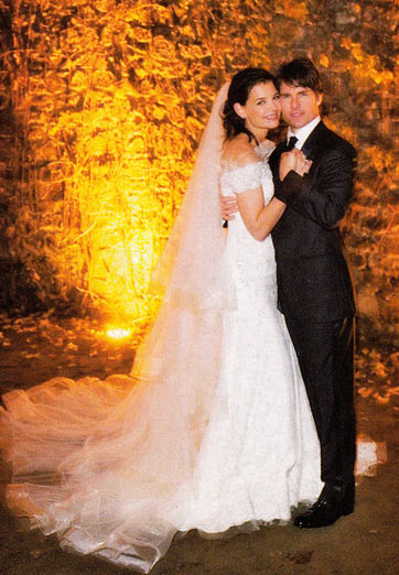 お騒がせ離婚となってしまったが、ふたりのウェディング姿は永遠に輝いて! ドレスもタキシードも、トムの長年の友人であるアルマーニがデザイン。ローマ近郊にある古城オデスカルキ城で挙式し、費用は200万ドルとも。