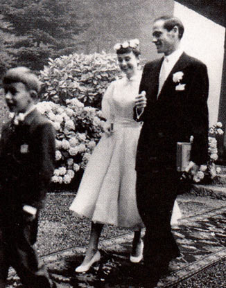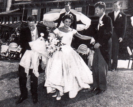 オフショルダーのドレスにパールのネックレス&ショートグローブで、いかにもアメリカ名家の令嬢風が可愛い! 約700名を招いて盛大な結婚式が行われました。