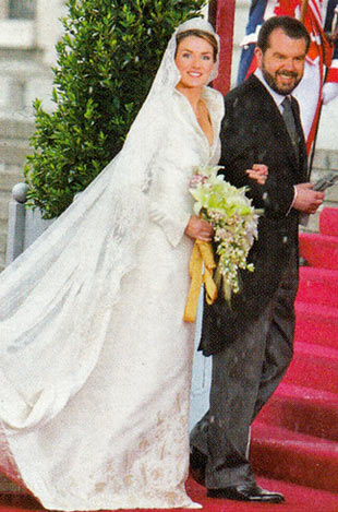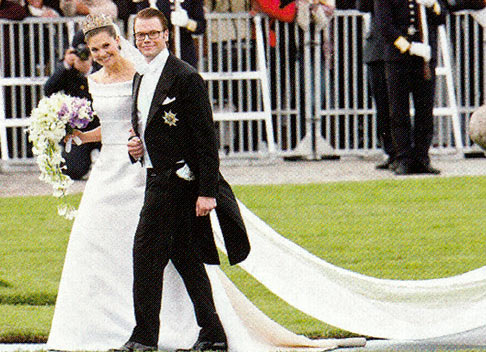 スウェーデンの次期女王であるヴィクトリア王女は、民間出身のダニエルとストックホルム大聖堂で挙式。シンプルなシルクサテンのドレスを着こなした王女からは、早くも将来女王となる人の貫禄が感じられます。