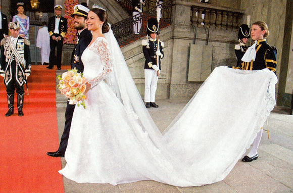 イケメンプリンス・スペインのカールフィリップ王子を射止めたのは、元モデルのソフィア。ハンドメイドのレースをあしらったドレスに、カール16世グスタフ王とシルヴィア王妃から贈られたティアラとイヤリングが輝きます。