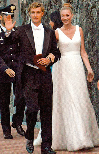 モナコのピエール・カシラギ王子とイタリア貴族令嬢ベアトリーチェは、その美男美女ぶりが眩しすぎます! ボロメオ家所有の島でエクスクルーシブなウェディングが行われ、ベアトリーチェはアルマーニ・プリヴェのドレスを着ました。