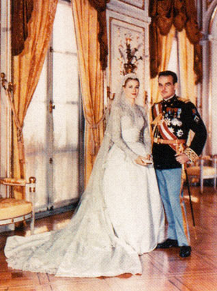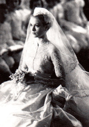 名家のお嬢様からハリウッド女優、そしてモナコ公妃に。可憐なレースをたっぷりと配し、露出を控えたクラシカルなデザインのドレスは、今なお多くの花嫁のモデルになっています。