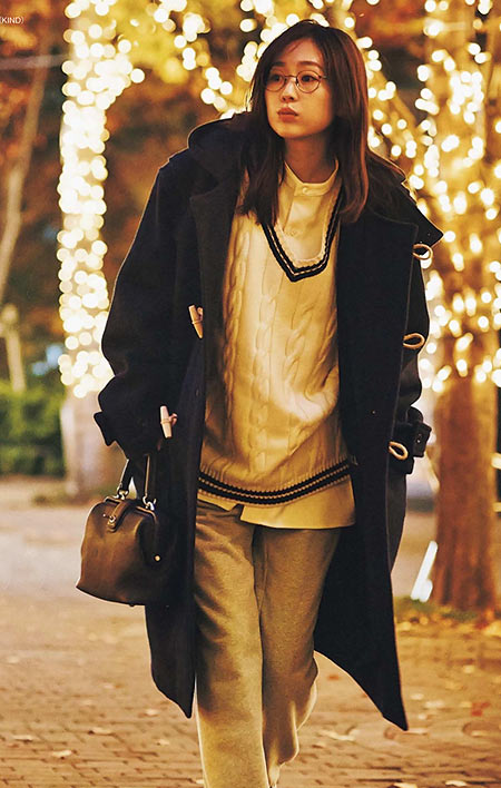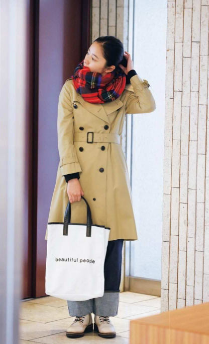 定番トラッドスタイルにカジュアルなニット帽を取り入れるだけで、新鮮な着こなしが完成。子供っぽくならないように、コートやニットもネイビーやベージュなどベーシックな色味でまとめて。