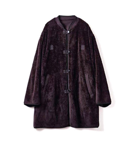 ブロークンツイルという、ツイルや平織りとも違う独特な表情の編み方が特徴。メンズブランでありながらユニセックスで使えるアウターは、ボアの裏側もリバーシブルで着用できるひと工夫も施されています。