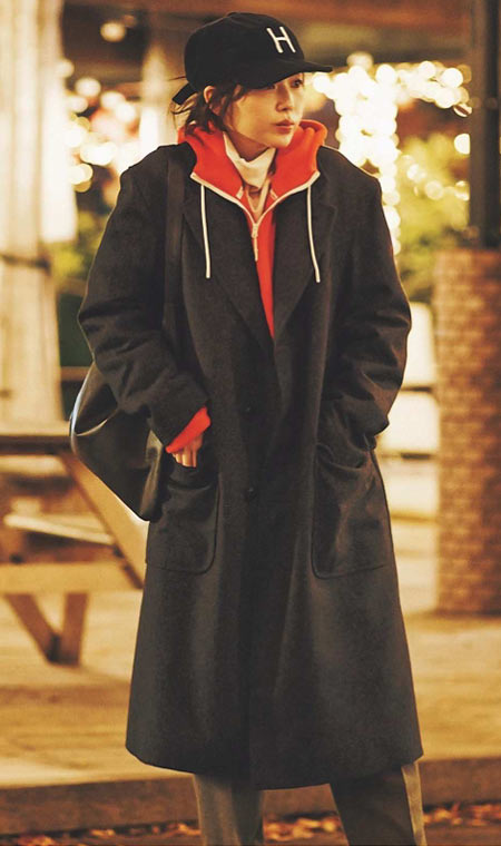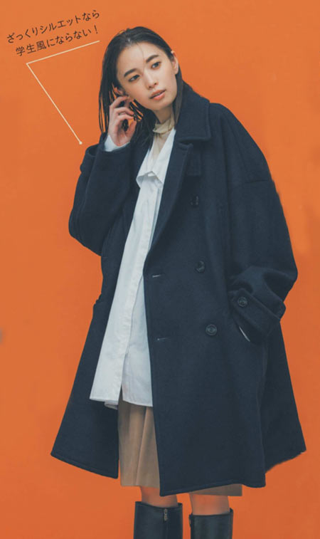 ゆるっとコーデが今っぽいコートはわざと大きめをチョイス
