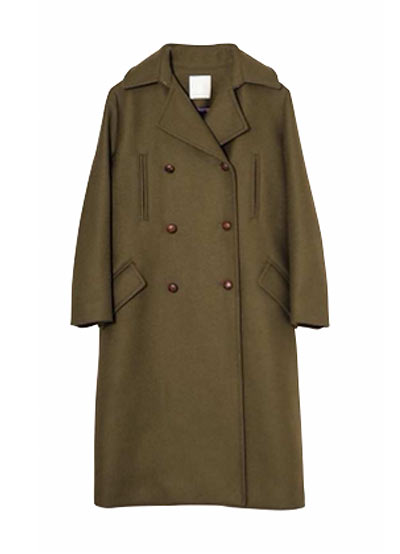ダブルブレスト+マキシ丈のボリューム感がありながら、スッキリした肩のラインがシルエットを綺麗に見せてくれます。