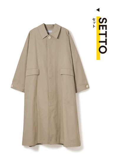 2019年春夏のデビューからアップデートを重ねていたオリジナル強撚ギャバジン生地のステンカラー(バルカラー)コートが、今年はライナー付きでリリース。