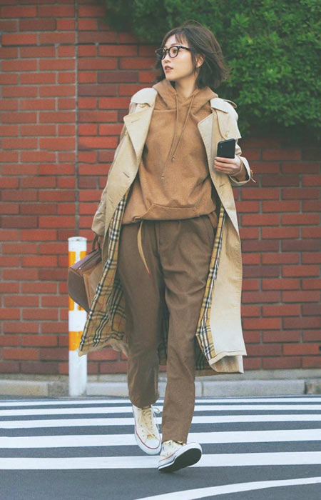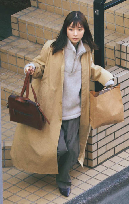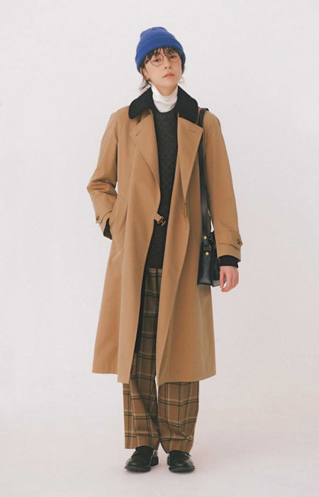 撥水性のある生地を使用している定番トレンチは1枚は持っておきたいもの。羽織るだけでキレイめな印象を演出してくれます。