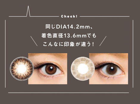 「カラコンを選ぶ際はデザインや色はもちろん、レンズの大きさを示すDIA(レンズ直径)や着色直径にも注目。また、似たようなデザインでも、レンズの大きさによって瞳の印象はかなり変わります!
