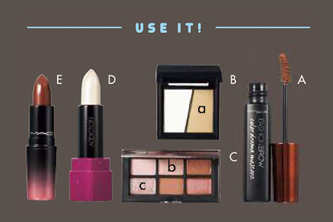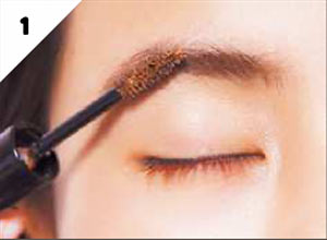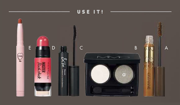 眉毛はAのマスカラを塗って、少し明るいピンクブラウンに。眉のトーンを上げて薄めに仕上げ、瞳の色みとなじみやすく!