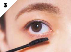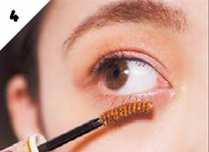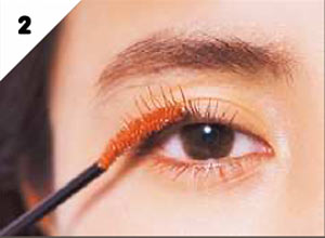 上下のまつ毛にBのオレンジマスカラを塗り、目元をぐっとおしゃれな印象に。アイシャドウは使わず、まつ毛をアピール!