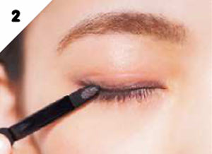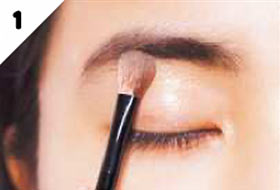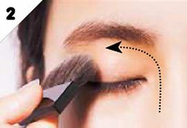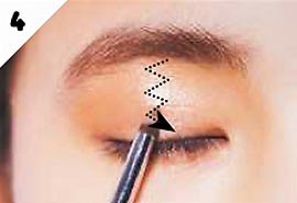 A-bのグレーを細めのブラシにとり、眉下の中央にだけ影をつける。眉と目の距離を近づけ、目元を深めて。